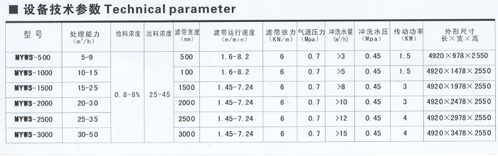 我公司在带式压滤机的基础上,吸取了国外最新机械浓缩,压滤脱水的原理和技术,开发了新型带式浓缩压榨过滤机,组成全新一代浓缩压滤脱水一体机。污泥经投加凝聚剂后进行充分混合反应流入浓缩段的进料分配器,将污泥均布到倾斜式的浓缩段上,并在泥耙的双向导疏和重力作用下,污泥随着滤布的移动,迅速脱去污泥的游离水。重力脱水后浓缩污泥反转机构将污泥输送至带式压滤机的重力脱水段进一步脱水。然后喂入“s”形压榨段,在“s”形压榨段中,污泥被夹在上、下两层滤布中间,经若干个不同直径辊筒反复压榨,促使泥饼再一次脱水,最后通过刮刀将泥饼刮落,而上下网带在运行过程中不断的地被自动清洗。该机具有生产能力大,污泥脱水率高的特点。被广泛的应用于市政污泥、尾矿、酒精废液、洗煤厂煤泥、造纸厂污泥、屠宰厂污泥、洗车厂污泥以及各类污水处理工艺中产生的污泥。