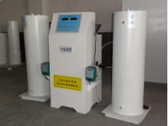 采用盐酸与氯酸钠定量注入到反应釜内,反应釜在加热的情况下发生化学反应生成二氧化氯与氯气,再通过水射器吸入投加到消毒水体中。