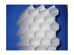 六角形蜂窝填料材质有聚丙烯(PP)聚氯乙烯(PVC)乙丙共聚和玻璃钢(FRP)四种。组装形式有斜管和直管两种形式。