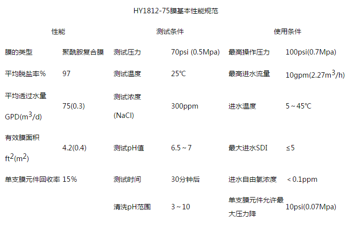 HY1812-75家用膜是海德能公司研制开发的用于自来水(或达到生活饮用水水质标准的原水)脱盐的超低压芳香族聚酰胺复合膜元件。其脱盐率可达97%。从而出水水质高,经济实用性强。