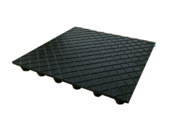 1.FRF 型橡胶隔振隔声垫,是一种根据橡胶动力特性研制成功的具有优越减振隔声效果的新型浮筑橡胶产品。该浮筑隔振垫的结构新颖,上面有外凸网格线条作防滑面的平板,下面为有相等间隔方形排列的倒截头圆锥体,且在每个倒锥体中间凹陷镂孔,形成半圆空腔,使在工作状态下增加气垫弹性,使结构受力更合理、性能更佳。