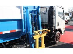 挂桶装置:挂桶式垃圾运输车自装料装置(挂桶提升机构)设在箱体的前部侧面,由支架、油缸、链条结构、吊钩等组成。此装置可将外部垃圾桶内的垃圾提升装入箱体内。