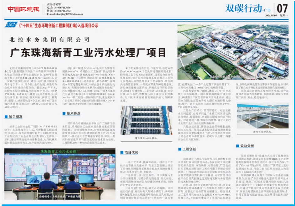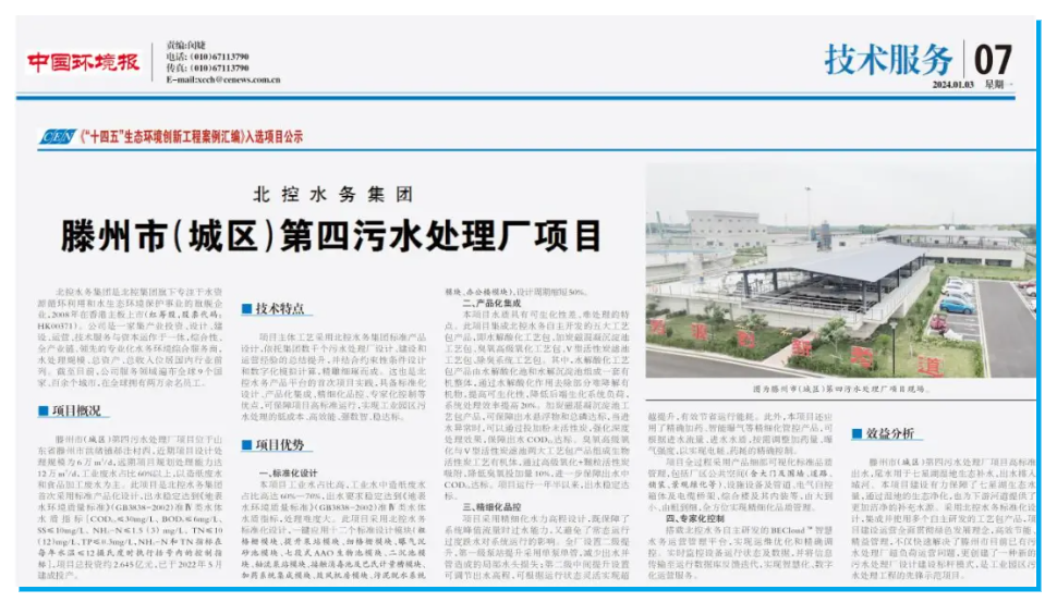 近日,北控水务滕州市(城区)第四污水处理厂、广东珠海新青工业污水处理厂入选《“十四五”生态环境创新工程案例汇编》。此次案例汇编由生态环境部主管的中国环境报社主办,旨在推动生态环境工程领域技术创新、管理创新和服务创新,助力深入打好污染防治攻坚战。