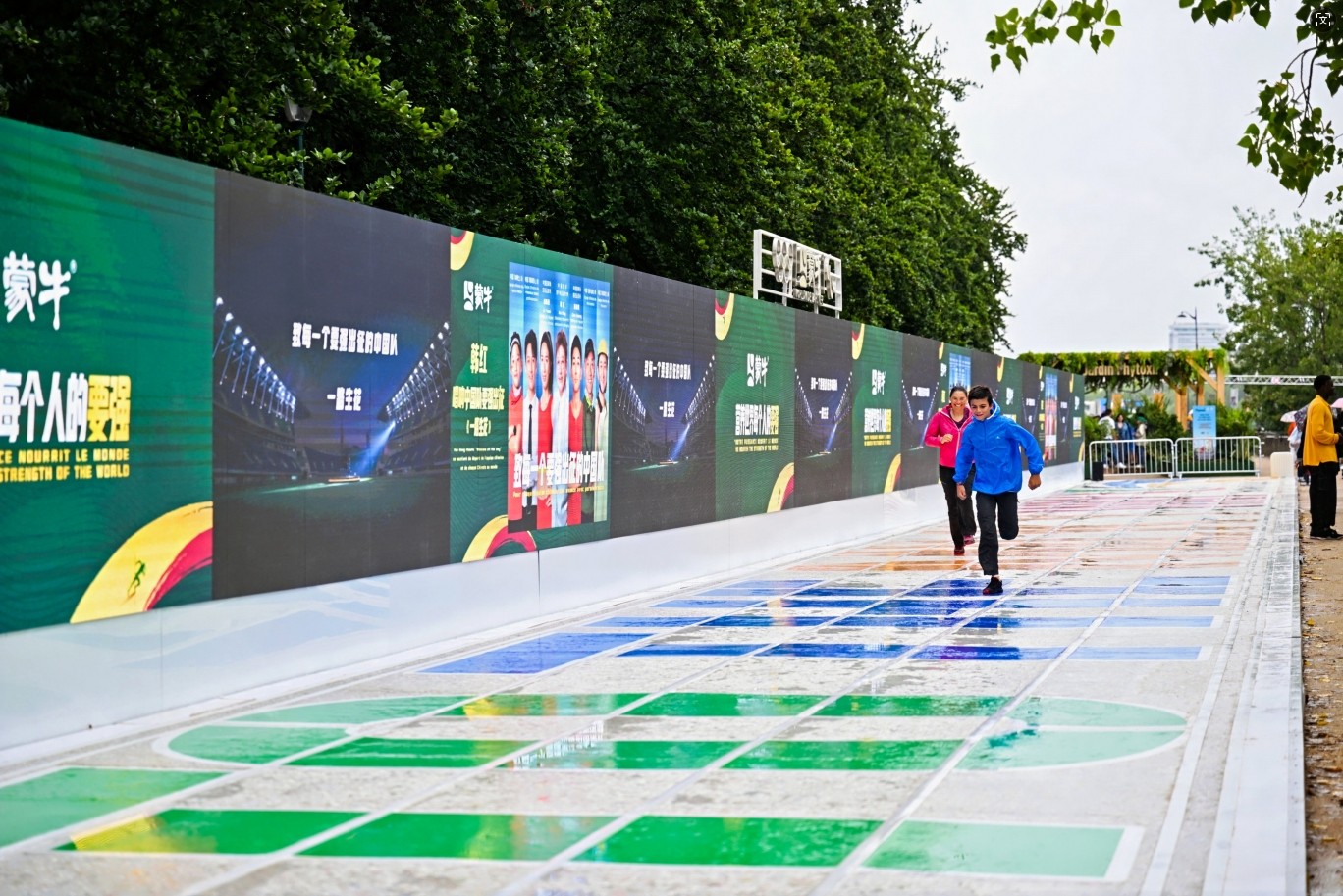 巴黎奥运期间,赛场座椅、颁奖台等都是用回收材料精心打造而成,象征着环保与循环的绿色理念。蒙牛积极响应这一理念,大胆创新,利用15万个废弃回收的牛奶盒,在塞纳河畔打造了一条近80米长的全民跑道。跑道的设计不仅吸引了公众的广泛参与,更激发了人们对环保与可持续发展的共鸣和参与。