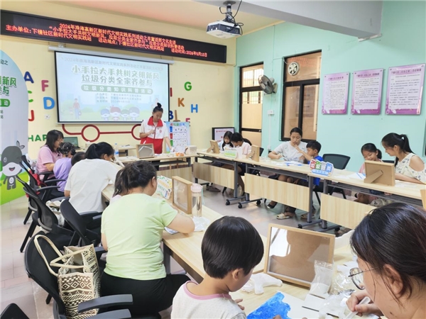 为促进垃圾分类家庭化,培养青少年环保意识,扎实推进社区垃圾分类工作,以“小手拉大手”的方式带动家庭,9月15日,珠海唐家湾镇下栅社区新时代文明实践站开展“小手拉大手共树文明新风,垃圾分类全家齐参与”垃圾分类知识科普活动助力“百千万工程”,引导亲子家庭自觉在家中进行垃圾分类。