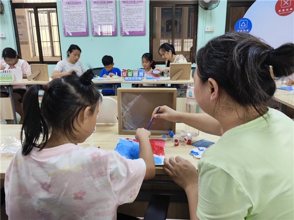 随后,老师以“变废为宝”为主题进行贝壳的奇妙变身——贝壳肌理画手工环节,首先向大家介绍了海洋肌理画的绘制方法和技巧,并指导亲子家庭如何运用材料创作出具有浮雕效果的肌理画。在家长的陪伴下,孩子们在创意与想象的海洋中遨游,利用贝壳、颜料、石英砂等环保材料,亲手制作出了一件件充满海洋元素的肌理画。这些作品不仅是孩子们创造力的结晶,更是对垃圾分类、环保生活的生动诠释。活动现场欢声笑语不断,亲子间的默契合作让这个绿色行动更添温馨与力量。