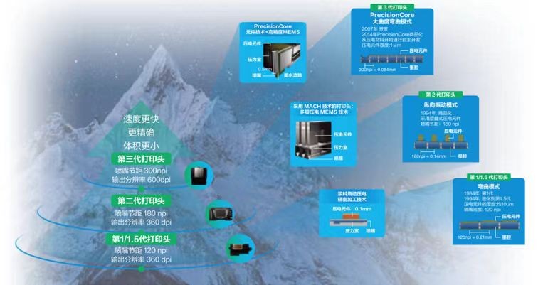 在打印领域,爱普生坚持钻研不加热的喷墨打印方式,在不断试炼后终于研发出了可大幅降低使用能耗的Heat-Free冷印技术,相比传统激光打印机 2,最大功耗下降高至90% 3,保证打印品质的同时降低环境负荷;而针对传统印刷带来的巨大污染及能耗挑战,爱普生经过3次迭代推出了PrecisionCore打印头,每个喷嘴直径约为普通人头发直径的1/5 4,且每秒可喷射高达50,000个墨滴,即可保证作品的高速、高质细腻的稳定输出,更低功耗也正在推动数字化打印产业向低碳升级转型,同时爱普生还将其完全开放给中国印刷厂商,协力共创助力中国印刷企业“走出去”!