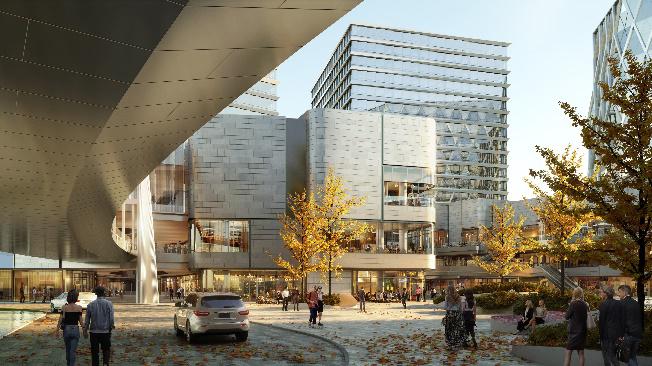 在众多令人期待的新设施中,“德尔斐”(The Delphi)无疑是设计核心及亮点。这是一个匠心独运的公共空间,专为激发创意、鼓励交流协作及增进身心健康而设计。它旨在构建一个集社交互动、知识分享、文化活动与健康养生于一体的多元化平台,吸引办公楼上班族、商场顾客、酒店宾客及其他访客汇聚于此。此外,项目周边还规划了广阔的公共绿色空间,加之焕然一新的坝河沿岸,均将与“德尔斐”的独特设计相得益彰,共同营造出一个将周边社区与自然环境和谐相融的优质环境,让社区焕发生机与活力。