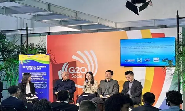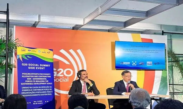 11月14-16日,G20 社会峰会(S20)在里约市中心Maua广场举行。14日,中国民促会与中促会、巴西非政府组织联合会(Abong)等5家中巴社会组织共同举办了“凝聚减贫合力,为可持续发展贡献民间力量”的S20主题边会。中促会副会长李军,巴西前司法部副部长、泛美人权委员会执行秘书阿布朗在会上致辞。全总女工部、巴西非政府组织联合会、京促会、巴西公民行动、加油里约等9家中巴社会组织的参会代表进行深入对话,共同探讨减贫与抗击饥饿的全球南方国家面临的挑战,以及实现粮食安全的重要性。中国民促会项目经理舒辰在会上分享了中国民促会在减贫方面的成功经验。