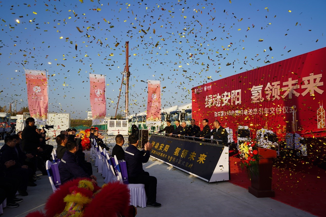 此次犀重汽车交付安阳原尚的150辆燃料电池牵引车作为迄今为止河南安阳市投运的最大一批氢能重卡,为安阳绿色物流发展以及氢能推广应用树立了一个新的里程碑。