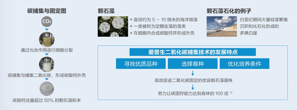 为消除大气中更多的碳,爱普生还基于自身专有技术,着力开发可以优先渗透二氧化碳的分离膜,以应对无法避免的剩余温室气体排放。在生物固碳方面,爱普生利用微藻进行二氧化碳捕集技术的研发,目前已成功将实验室中的二氧化碳固定量提高到森林的70倍*10。