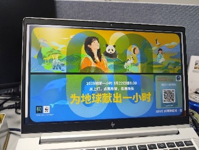 上海索广映像有限公司通过 “索广 E 家” 公众号及办公电脑开机弹屏,向全员推送节能低碳理念,呼吁员工在家中同步践行关灯一小时,将环保行动从职场延伸至家庭。