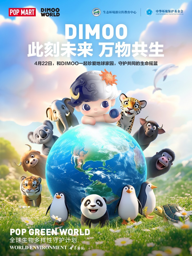 2025年4月22日是第56个世界地球日,今年世界地球日期间,泡泡玛特旗下超人气IP DIMOO发布了全球首款55%再生材料手办(下简称“DIMOO地球日手办”),同时正式启动了覆盖七大洲的「POP GREEN WORLD」全球生物多样性守护计划。未来,泡泡玛特将探索IP与各大洲不同物种的跨界联名,创新生物保护路径,呼吁全球粉丝与DIMOO一起成为地球守护者。