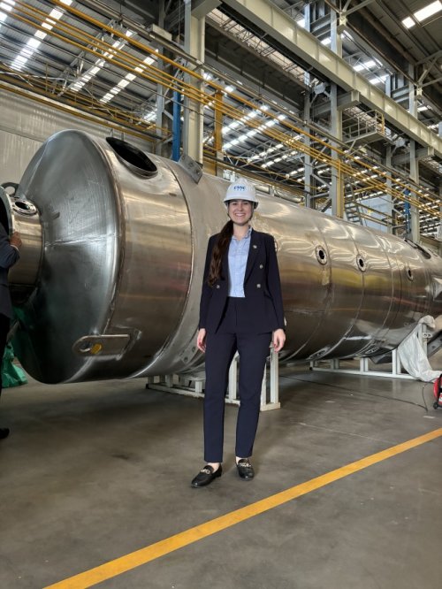 照片说明:PureteQ全球销售经理Anna B. Hansen站在中船动力(集团)有限公司正在建造的洗涤塔前