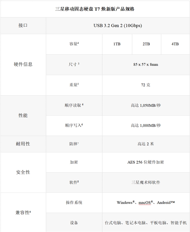 凭借负责任的设计理念、强悍的性能表现、海量存储容量及跨设备兼容性,T7焕新版让创作者在工作流程中能做出更具环保意识的选择。三星始终致力于以负责任的方式推动创新,打造兼具卓越性能与持久价值的存储解决方案。