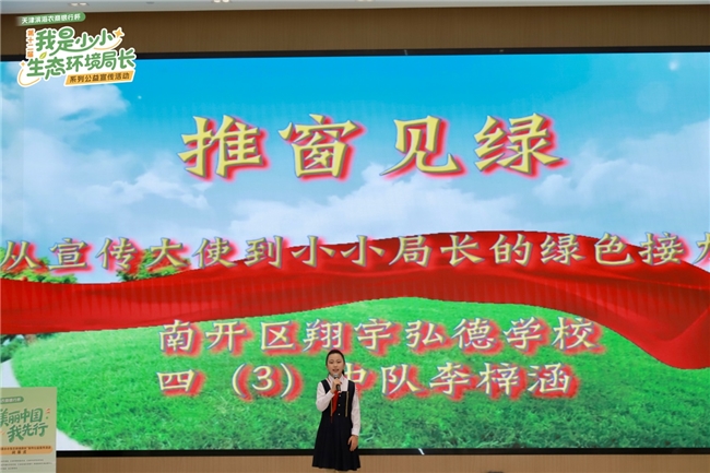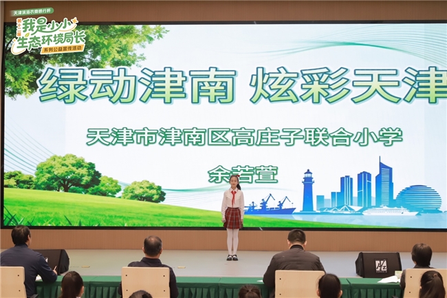 活动在一段精彩回顾视频中拉开序幕,带领观众重温了本届系列活动的动人瞬间。三位新晋“小小生态环境局长”——天津市翔宇弘德学校李梓涵、津南区高庄子联合小学余若萱、东丽湖未来学校陶盈仪依次登台,分享他们的绿色“施政理念”,展现出新时代青少年对生态文明的深刻思考与责任传承。