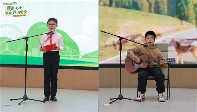 文艺表演环节同样精彩纷呈。第十一届“小小生态环境局长”代表赵悦安以一曲《平凡之路》吉他弹唱,传递出环保路上坚守初心的力量;天津南开日新学校任曦彤带来的诗朗诵《绿色 最美丽的颜色》,深情表达了对绿色家园的礼赞与向往。