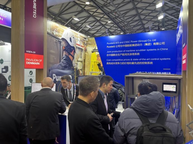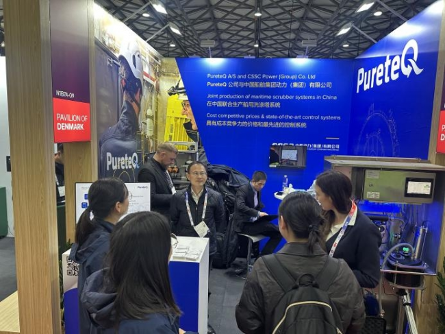 2025年中国国际海事会展(Marintec China 2025)已在上海新国际博览中心圆满落幕。深耕海事绿色技术近20年的丹麦船舶脱硫系统制造商PureteQ,携四大核心业务精彩亮相丹麦馆,成为展会核心交流场景之一。在全球“双碳”目标深入推进、国际海事组织(IMO)环保规范持续收紧的行业背景下,船舶环保转型已成为海事领域的核心发展趋势。PureteQ 凭借在脱硫系统制造、碳捕集技术等领域的深厚积累,依托与中船动力(集团)有限公司(CPGC)联合生产船用洗涤塔系统的本土化合作优势,实现了更快的船厂安装速度、更短的调试周期,以及更低的综合运营成本,成为展会期间行业关注的焦点。