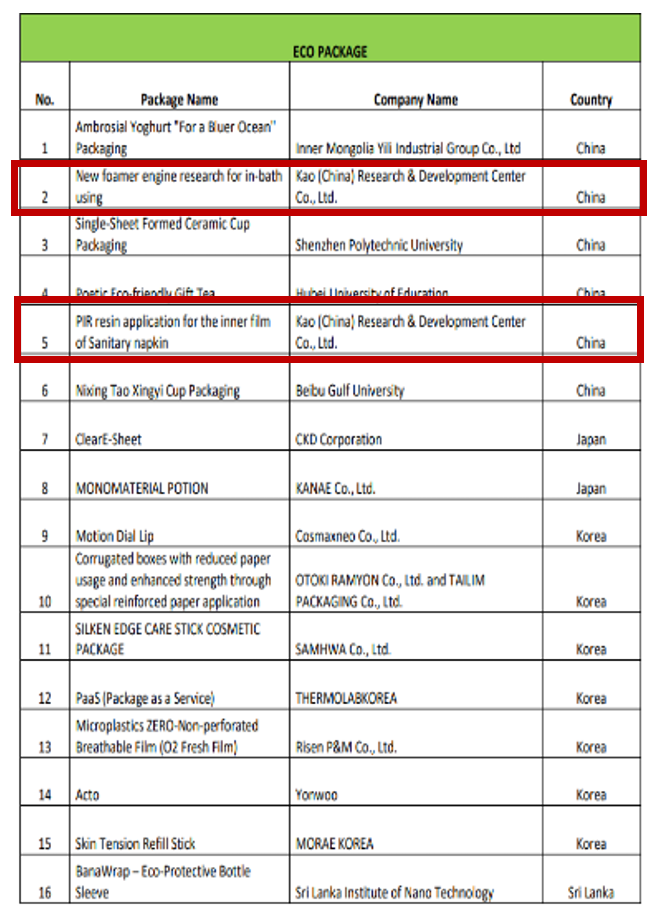 此次已是花王(中国)第二次获得“亚洲之星”AsiaStar Awards包装奖的肯定。去年,花王(中国)凭借自主研发的“20倍发泡倍率泡沫泵结构设计”和“PCR再生树脂在PE与PET美妆护理卸妆产品包装容器上的应用”摘得“结构设计奖”和“包装ECO奖”。今年,花王(中国)以碧柔洁面泡泡的“防进水泡沫泵结构设计”和乐而雅零触感卫生巾的“再生树脂技术在卫生巾包装袋中应用设计”参与评选,再次获得了国际级的肯定。