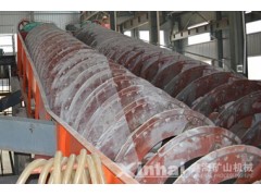 沉没式螺旋分级机溢流端的螺旋叶片全部浸入溢流面以下,主要适用于溢流粒度为0.15~0.07mm的矿石分级。