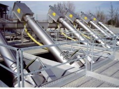 工作原理及结构:处理水中的漂浮物经栅筐过滤后截留于筐内,栅面上,随着截留污物量的增多,过滤面积逐渐减小,水头损失逐渐增大,当筐内外水位差达到设定值时,除污耙自动回转梳除栅渣,卸入栅筐中的集渣斗内,由底部的螺旋输送机提升,栅渣边上行边沥水,至顶端压榨段时挤压脱水,脱水后的固含量可达40%左右,入贮渣容器中,外运处理。