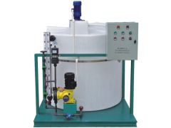 本装置主要包括药液溶配系统、计量投加系统、安全系统和控制系统等四部分。固体药剂加入溶药箱约,然后按比例加入工业水搅拌溶解,由计量投加系统投加到投药点。投加控制采用手动方式,也可依据上位系统输出的控制信号,进行随动控制,自动投加。