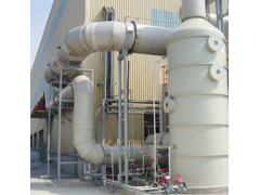玻璃钢湿法脱硫除尘器,运用了基于多相紊流强传质机理而研制的一种湿法脱硫除尘技术,把离心水膜除尘和喷雾沸腾脱硫除尘相结合为一体,将带有粉尘和有害气体的烟气经文丘里和特制的旋流器被加速,并与文丘里前喷入的雾化液及塔部上端喷淋的脱硫液相碰撞形成旋切力,气、液被高速旋切,充分混合后上升进入沸腾反应层,烟气中的粉尘和有害气体被脱硫液中的微细液粒捕获与吸收,由于雾化的液粒产生大量界面,因而单位液量捕集和吸收烟尘和有害气体的效率高。净化后的烟气经脱水器、引风机、烟囱排到大气中