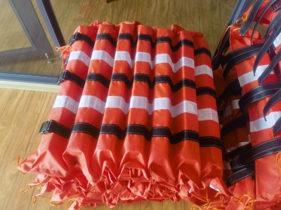 用5"管线安装;浮力块长度750mm;每块净浮力大于28kg;浮力块采用软质浮性材料填充,可弯曲;采用分隔式的填充设计;内部有2条松紧带固定,外部三条可调节的松紧带每固定;两端附带系绳确保安装后收紧;该浮力块须为柔软材质,能紧贴弯曲的管线表面,防止使用时随管线滑脱;浮力块外表面须缝制2条不易脱落的环形反光带