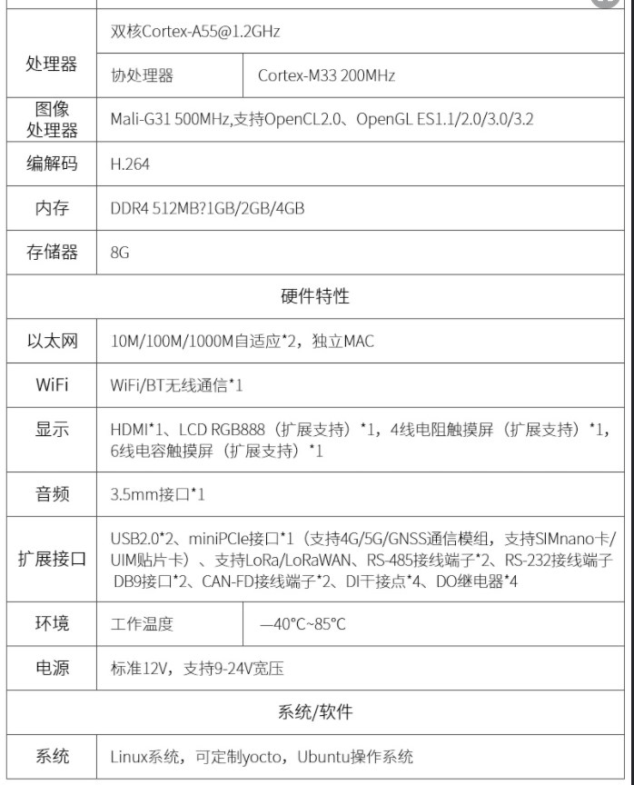 双核Cortex-A55@1.2GHZ&Cortex-M33 200MHZ