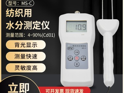 MS-C纺织原料水分测定仪是我公司研发生产的一款高精度,高性能的智能水分测定仪器。该仪器广泛应用于棉花,纱锭,毛纺,丝绸,麻类制品以及再生油毛条等需要快速测量水分或回潮率的行业。该仪测量范围宽,精确度高,分辨力强,测量迅速,性能稳定,可随身携带在现场快速检测,适用于棉花行业,贸易,科研和质检部门。