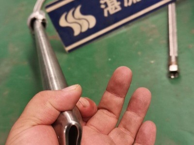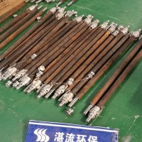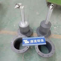 干法脱硫喷枪用于在干法脱硫系统中喷射超细粉末状的脱硫剂,包括输送弯头、腔头、喷嘴、进口粉末管和出口粉合管。输送弯头与腔头固定连接,喷嘴嵌入腔头中通过输送弯头及腔头固定,进口粉合管与腔头固定连接,出口粉合管与进口粉合管固定连接。通过输送弯头输送压缩空气,经过喷嘴加压后输出,带有压力的压缩空气与由腔头输送的含粉料的风在进口粉合管处混合形成气流。同时经进口粉合管为气流加 压,由出口粉合管加速喷出。由此增加了干法脱硫喷枪喷射压力,使得喷出的脱硫剂射程更远,从而更好的与烟气混合,进而提高脱硫效率。